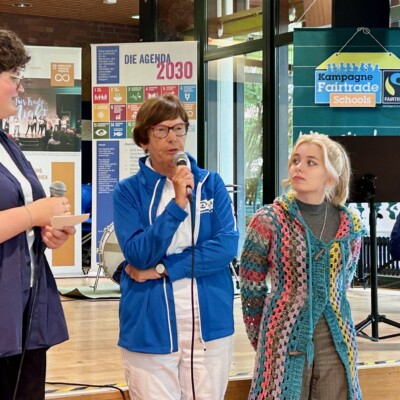 Veronika Keller-Lauscher (PLAN AG Köln) gratuliert Als Kooperationspartner der Lise-Meitner-Gesamtschule in Köln-Porz-Finkenberg gratulierte die PLAN AG Köln zum 20jährigen Jubiläum der Schüler:innen-Firma Ökotec. Im Mittelpunkt der Veranstaltung stand u.a. eine Podiumsdiskussion zum Thema "Fairer Handel und Nachhaltigkeit". Ökotec bietet täglich Fairtrade-Produkte und recyclebare Büromaterialien für die Schulgemeinde an. Ökotec ist zudem überregional vernetzt und nimmt…